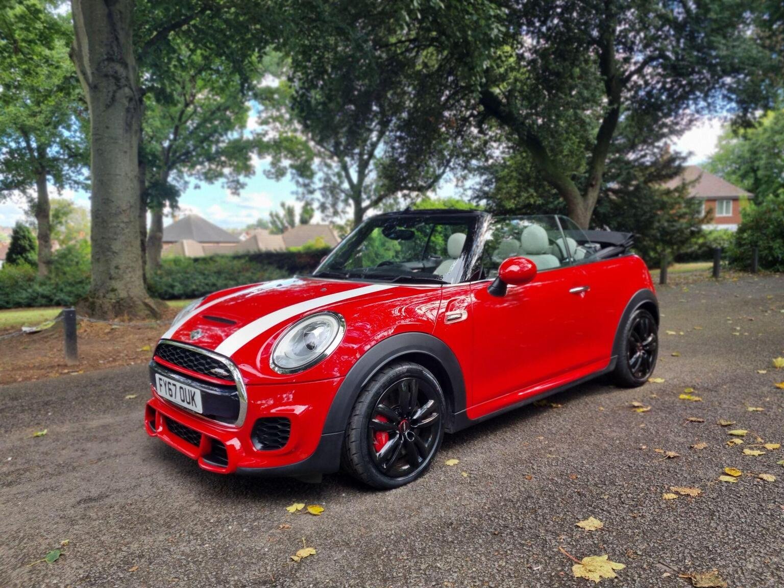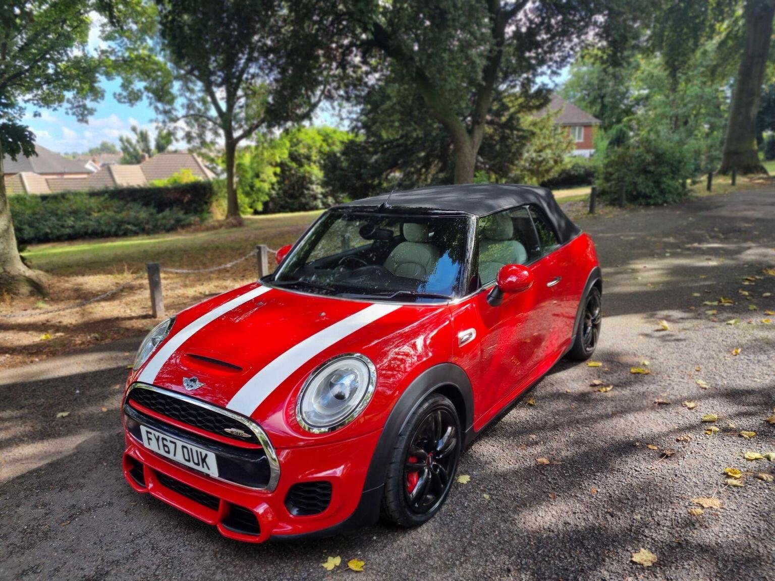 Welcome to our listing of this stunning example of the desirable Mini JCW 2.0 Convertible..Finished in unmarked Chili Red with beautiful full leather sports pack interior...recently serviced and MOT`d ,so ready to drive away and enjoy..Great specification including JCW Pro Exhaust with bluetooth function (over £1800 option) Heated seats,Bluetooth,Air conditioning,Alloy wheels,JCW bodykit,Wind deflector,Rear camera,Harmon Kardon Hi FI,Rear parking sensors,etc etc...This really is a special car.!.